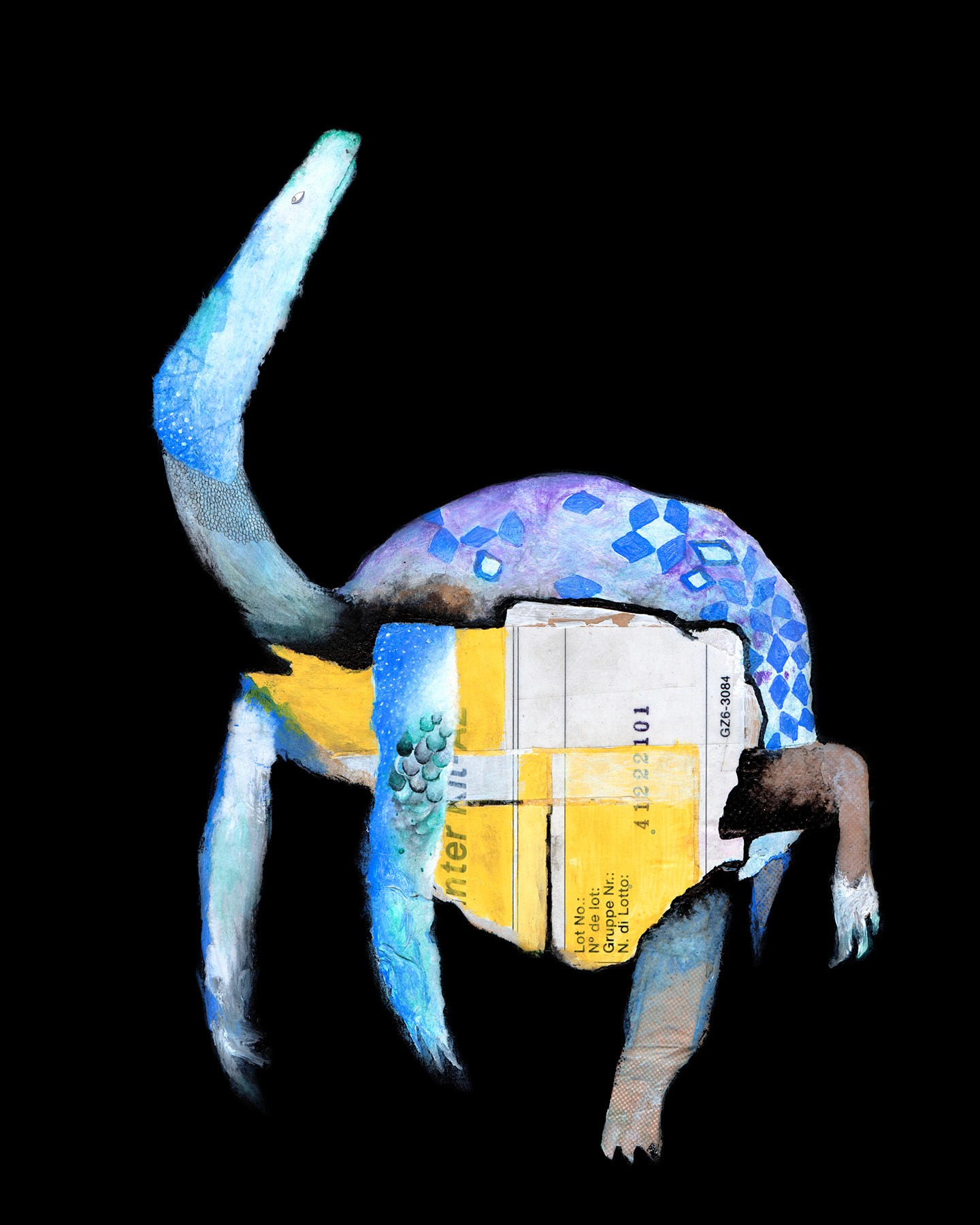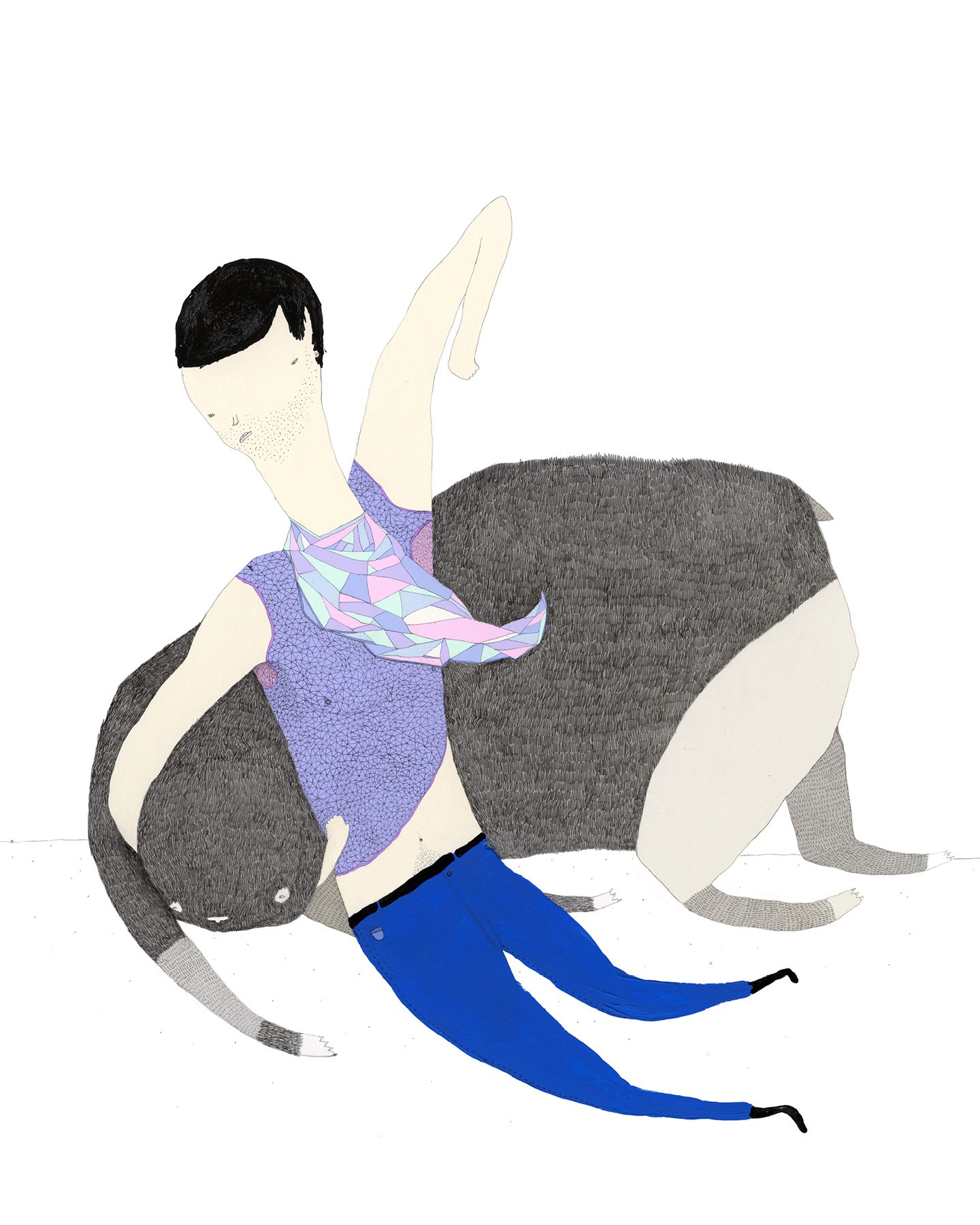 "Through the use of found materials and mixed media, life is given to a herd of eclectic, hybrid animals... while intricate drawings tap into childhood memories and explore an adult reality."